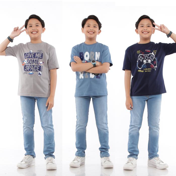 KAOS ANAK LAKI LENGAN PENDEK USIA 5 SAMPAI 14 TAHUN FASHION - M (5-6 TAHUN), KL HITAM