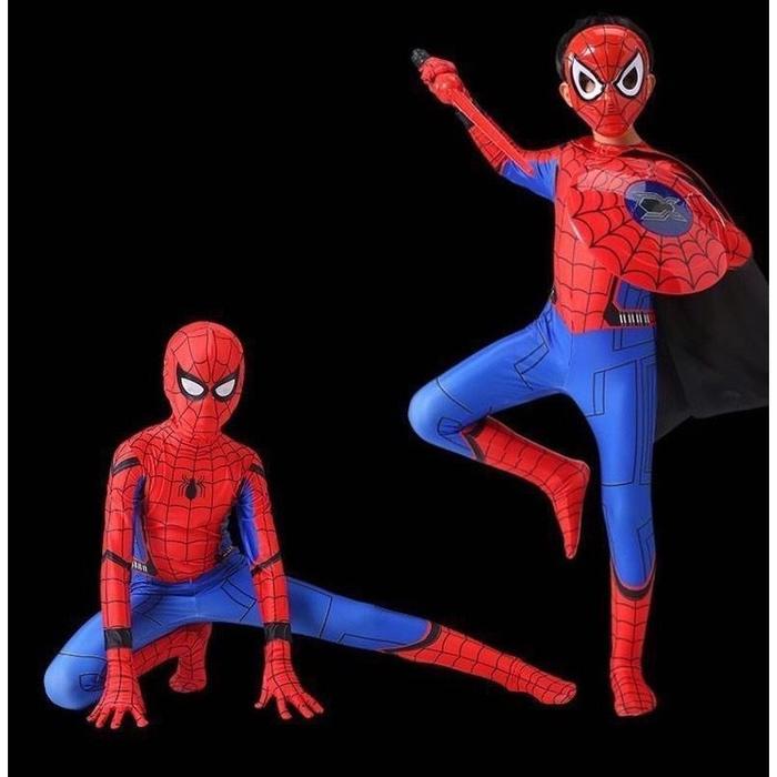 KOSTUM ANAK SPIDERMAN BAJU COSPLAY SUPERHERO JUMPSUIT + TOPENG FASHION COSTUME - #1, 140(8-9TAHUN)