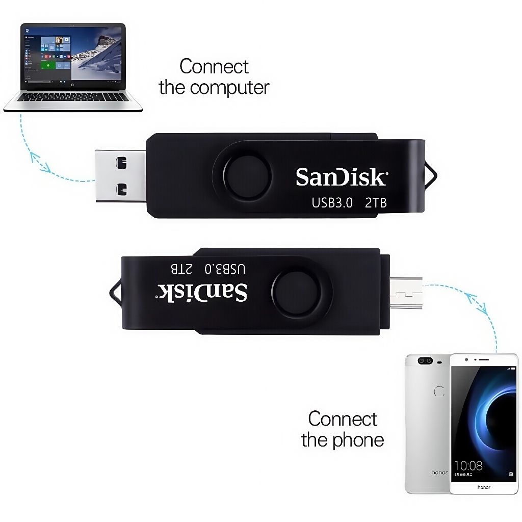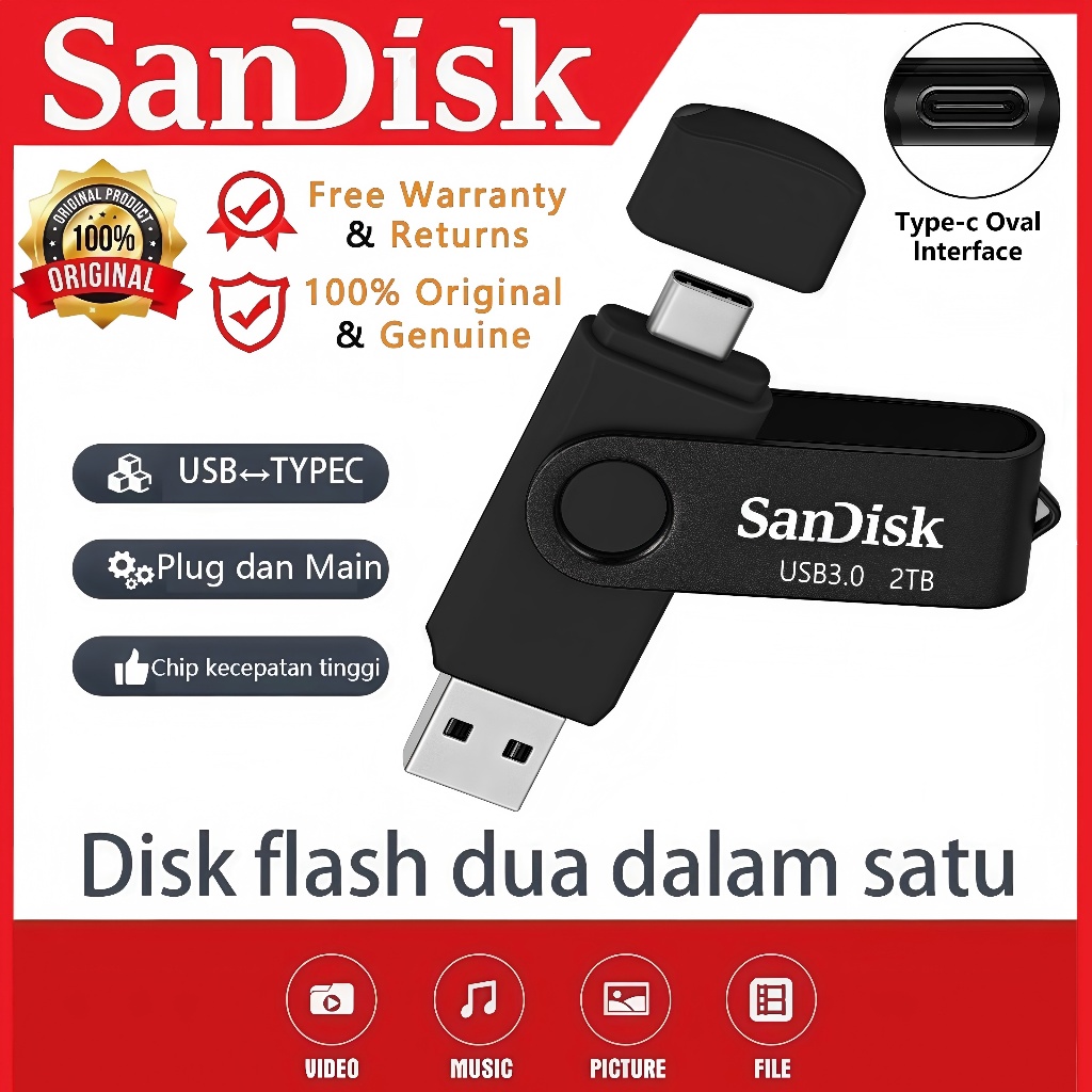 [Mall] SANDISK FLASHDISK OTG DUAL DRIVE USB3.0 + TYPE C 1TB/2TB ROTATABLE HIGH SPEED USB FLASH DRIVE