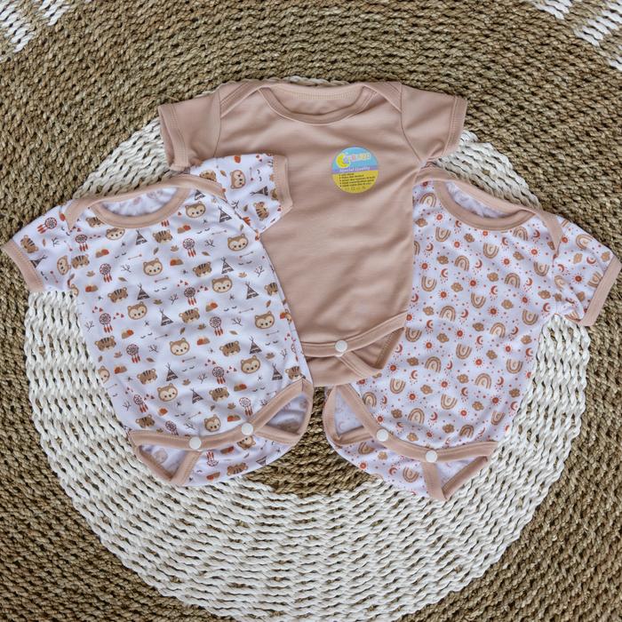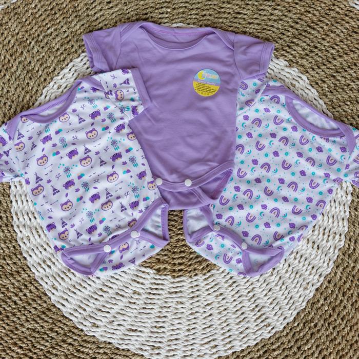 3 IN 1 JUMPER BAYI PENDEK JUMPSUIT BABY MOTIF SALUR POLOS DAN TABUR NEWBORN LENGAN PENDEK KATUN KAOS PE DOUBLE PEREMPUAN LAKI LAKI - 3IN1 ABU
