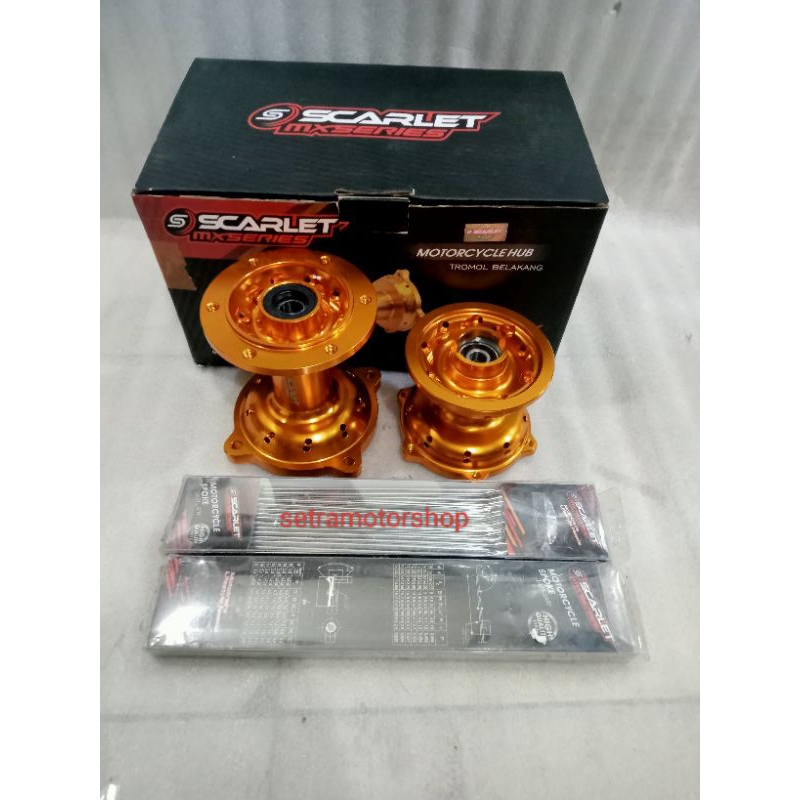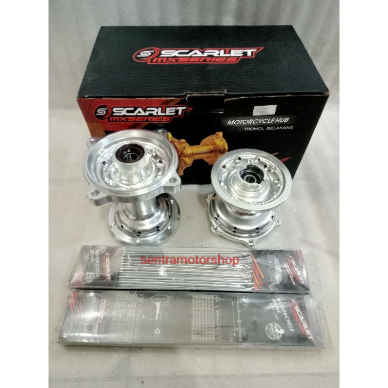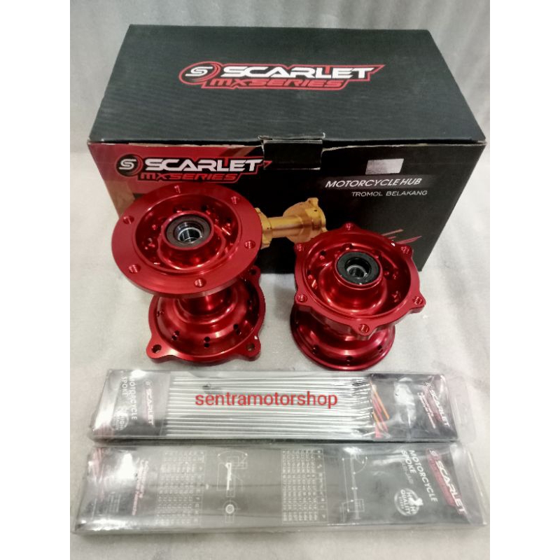 tromol scarlet full cnc KLX / D-Tracker 1 set depan belakang sudah sama bearing + jari jari 17/17 or 18/21 or 16/19