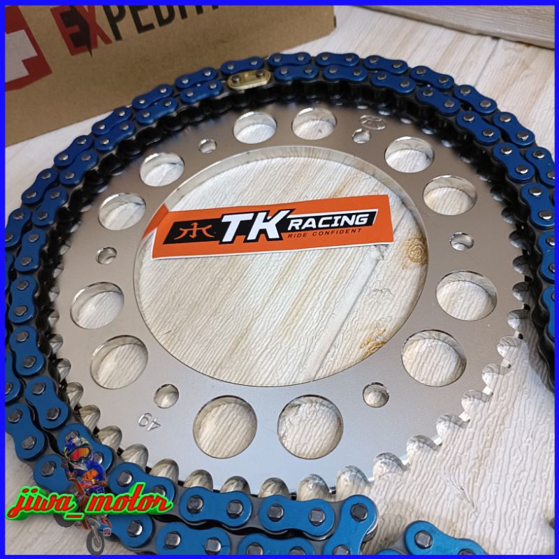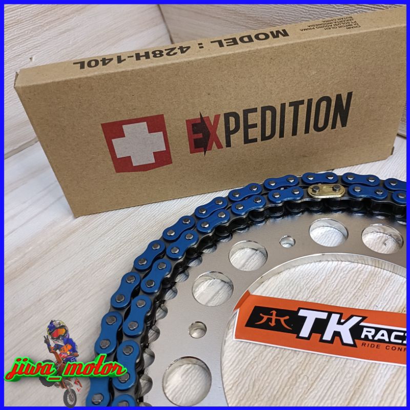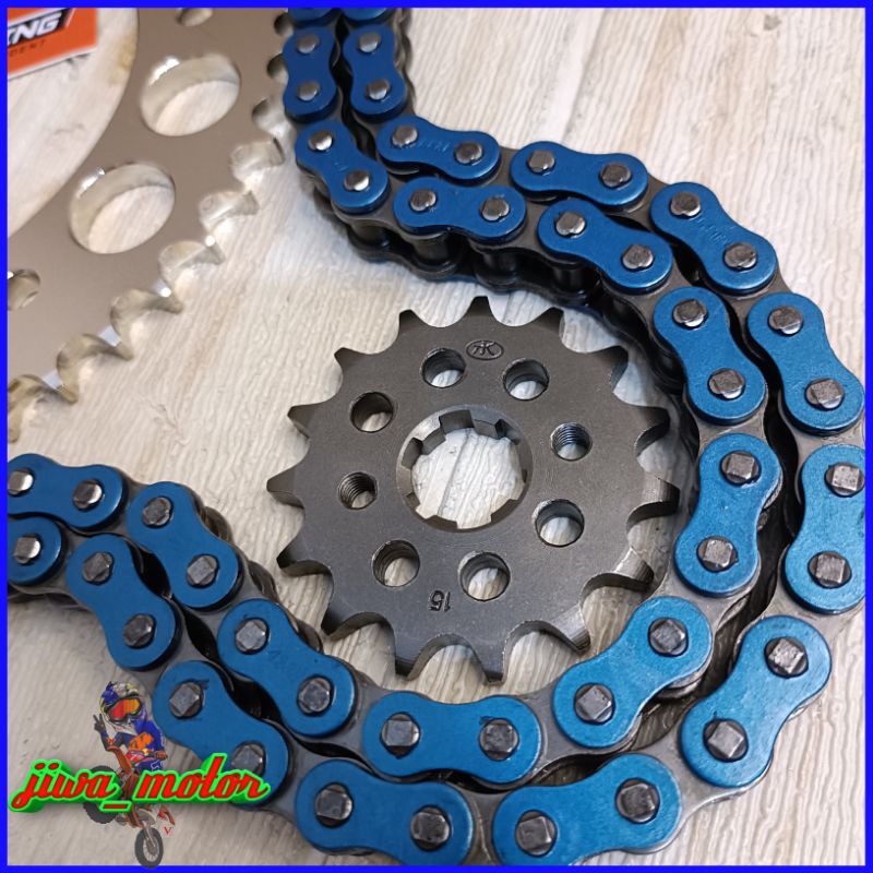 Gear set crf 150 TK racing plus rantai BIRU VZM/Expedition 428H 140l cocok untuk Supermoto dan trabas kuat dan awet