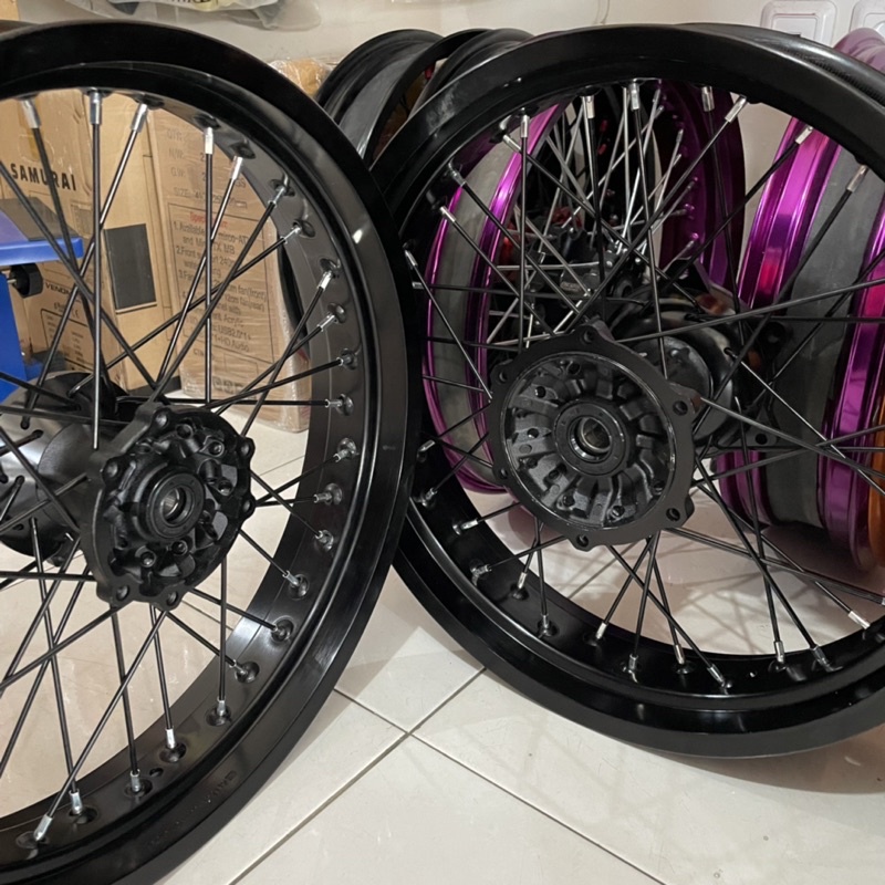 Wheelset Velg Supermoto WR 155 WR155 Tromol Scarlet Velg Expedition 350-300 Ring 17