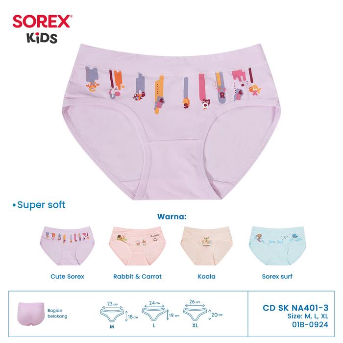 3 PCS CELANA DALAM ANAK PEREMPUAN CD SEGITIGA ANAK CEWEK MOTIF LUCU SUPER SOFT SOREX KIDS - M