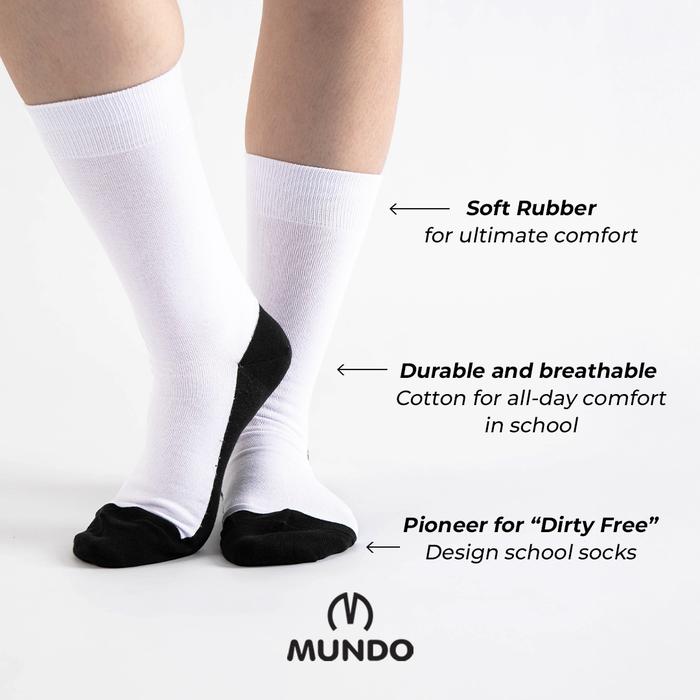 MUNDO SCHOOL SOCK DIRTY FREE KNEE - KAOS KAKI ANAK SEKOLAH SEBETIS TELAPAK HITAM - SHOE 31 - 33 (ID6P)