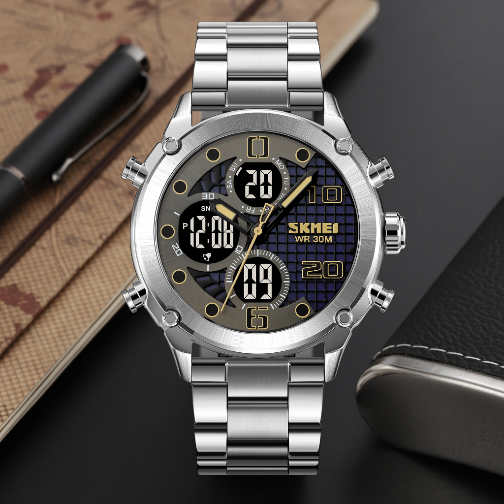 SKMEI 1975 Jam Tangan Pria Digital Analog Tali Stainless Rantai WATCHKITE WKOS