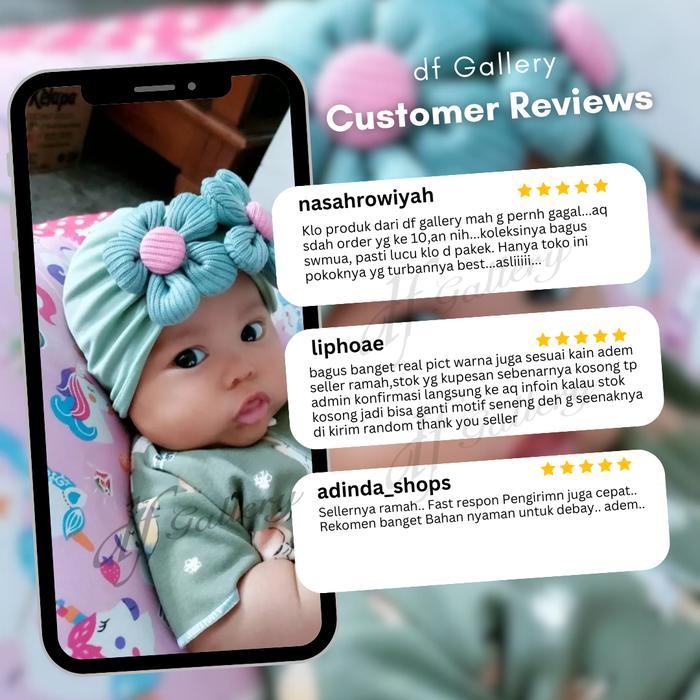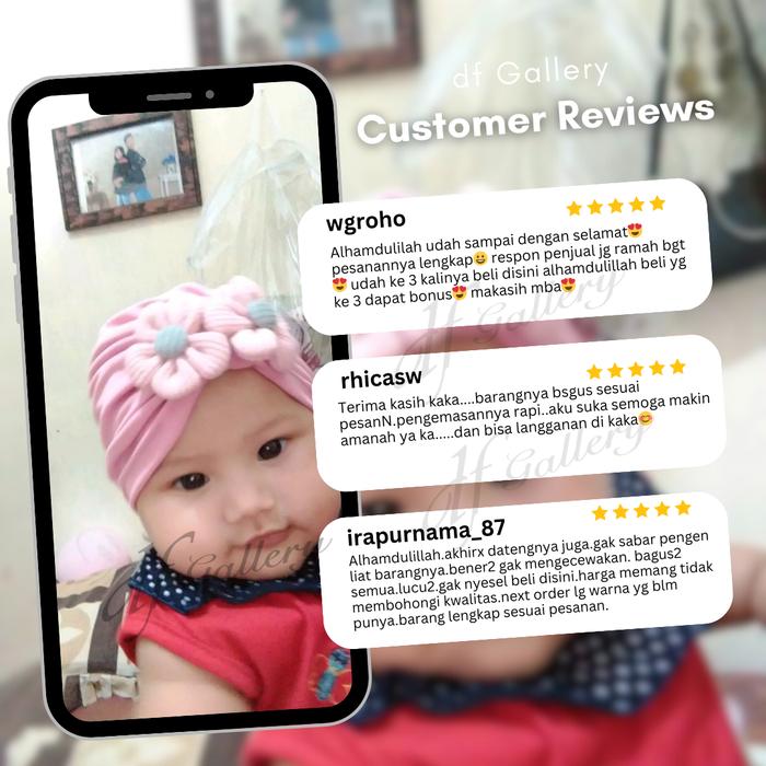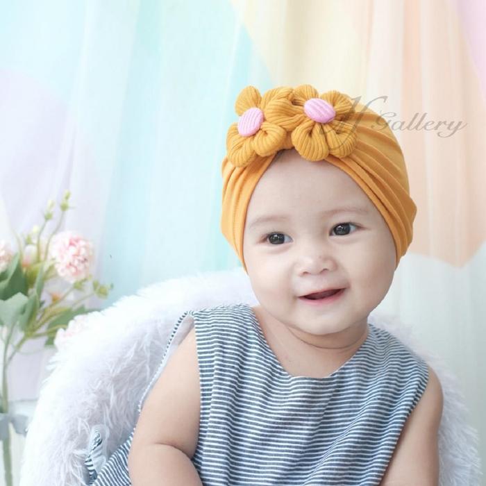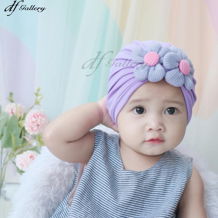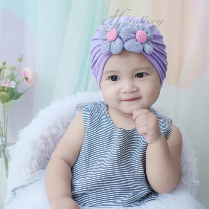 SET TURBAN BAYI PEREMPUAN 0 6 BULAN - 3 TAHUN | PREMIUM CANTIK & MENGGEMASKAN | GITA BY DFGALLERYTURBAN BUNGA BUNDA - ABU (WAFLE)