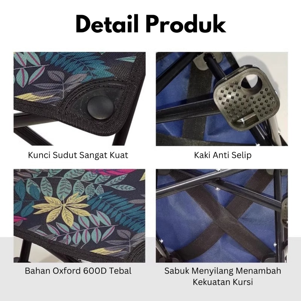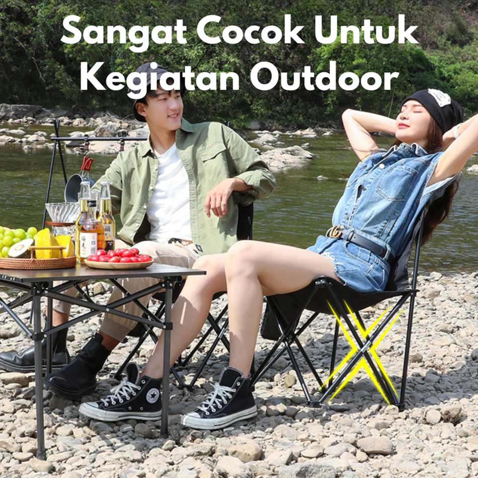 Kursi Lipat Outdoor Sandaran Dengan Sandaran FREE TAS Kursi Camping Kuat/Lebar/Tebal Beban 150kg Kursi Gunung Portable -