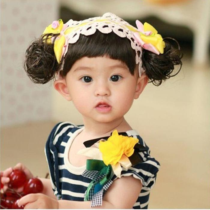 BANDANA PONI BAYI LUCU TOPI WIG BAYI PEREMPUAN BANDO RAMBUT KEPANG PONI PALSU IMPORT - A