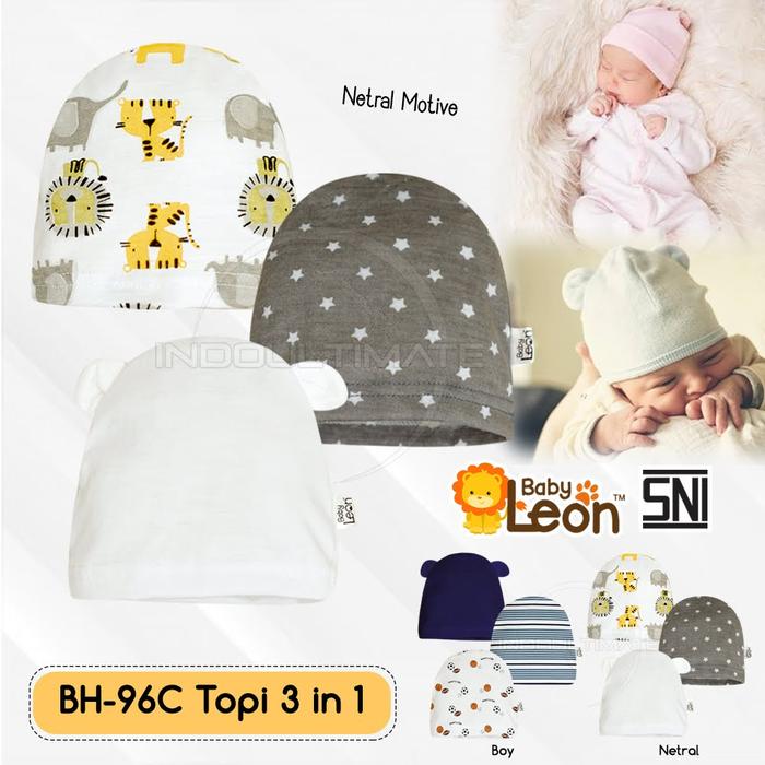 TOPI BAYI TOPI KUPLUK BAYI ISI 3 BABY LEON 100 PERSEN COTTON BH-96C TOPI ANAK ISI 3 PCS BABY HAT NEW BORN PELINDUNG KEPALA BAYI PERLENGKAPAN BAYI PERLENGKAPAN ANAK BOY - 3IN1 BOY