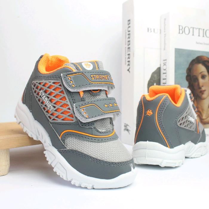 SEPATU SEKOLAH ANAK TK PAUD SD WARNA INJECT COWOK CEWEK PEREMPUAN LAKI-LAKI - ABU ORANGE, 28