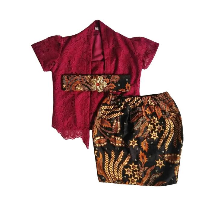SETELAN KEBAYA ANAK KUTUBARU LAPIIS FURING ROK PENDEK FASHION - MAROON, XS