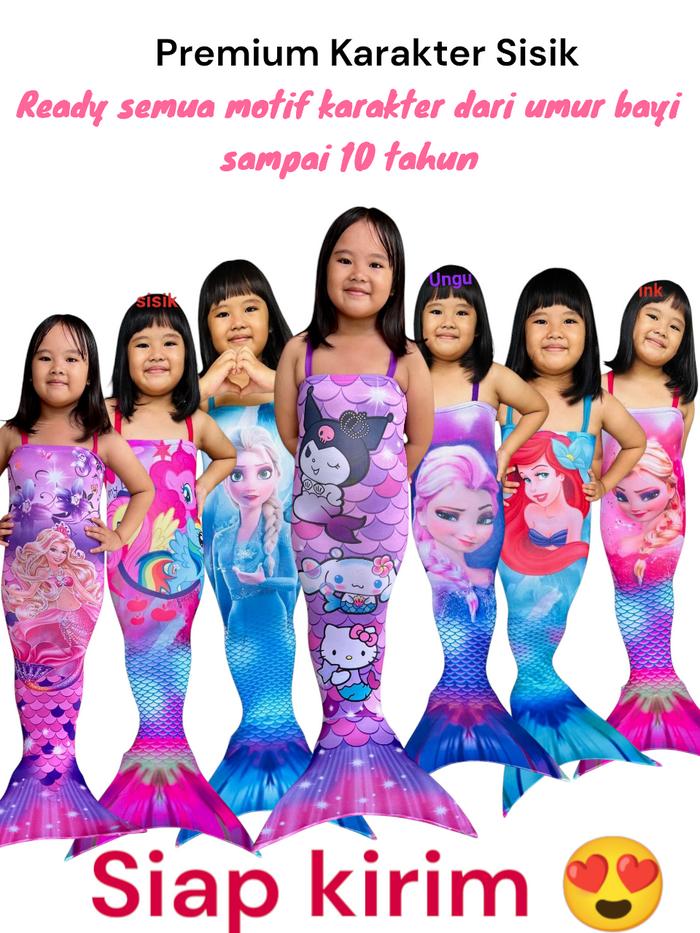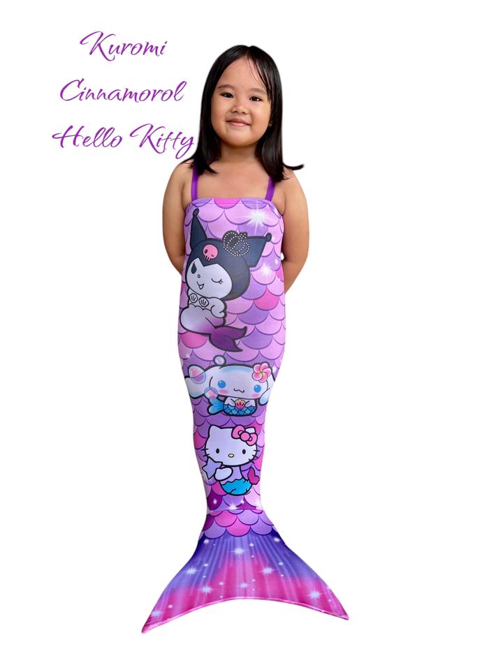 KOSTUM MERMAD PUTRI DUYUNG ANAK PEREMPUAN PREMIUM KARAKTER - FASHION - SISIK KUROMI CINNAMOROL HELLOKITTY, XS