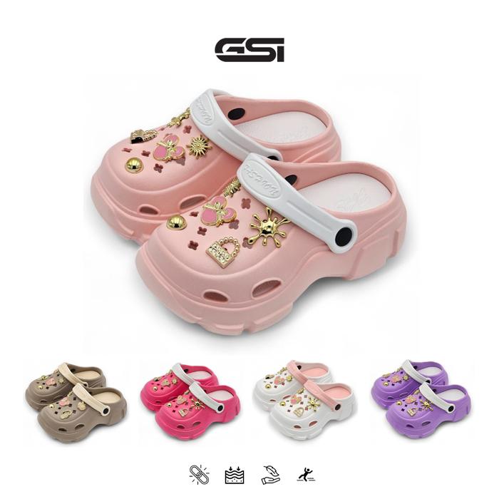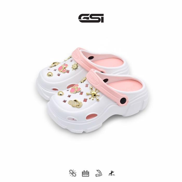 【GSI SHOES】SANDAL ANAK PEREMPUAN SENDAL SELOP BAIM KARAKTER FASHION BAHAN KARET EVA LEMBUT EMPUK DAN RINGAN - WHITE FUCHSIA, 24 - 25