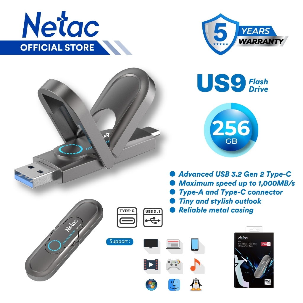 [Mall] NETAC OTG FLASHDISK US5 / US9 USB 3.2 + TYPE C SOLID STATE FLASH DRIVE 128GB/256GB/512GB/1TB DUAL FLASH DISK
