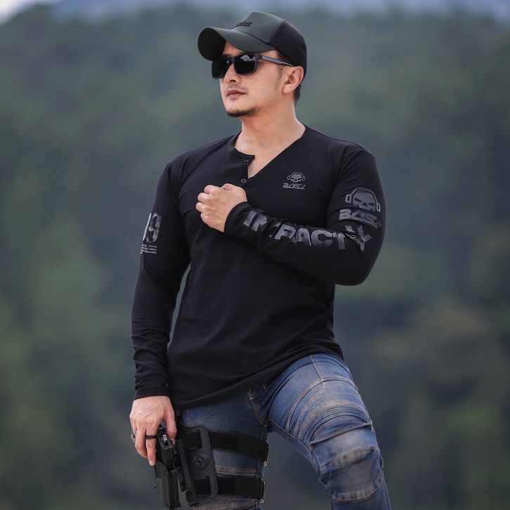 Kaos Panjang Pria Kaos Tactical Pria Lengan Panjang KAOSBOS.ID Kaos Distro Pria Tactical Hitam Pendek Cotton Stretch