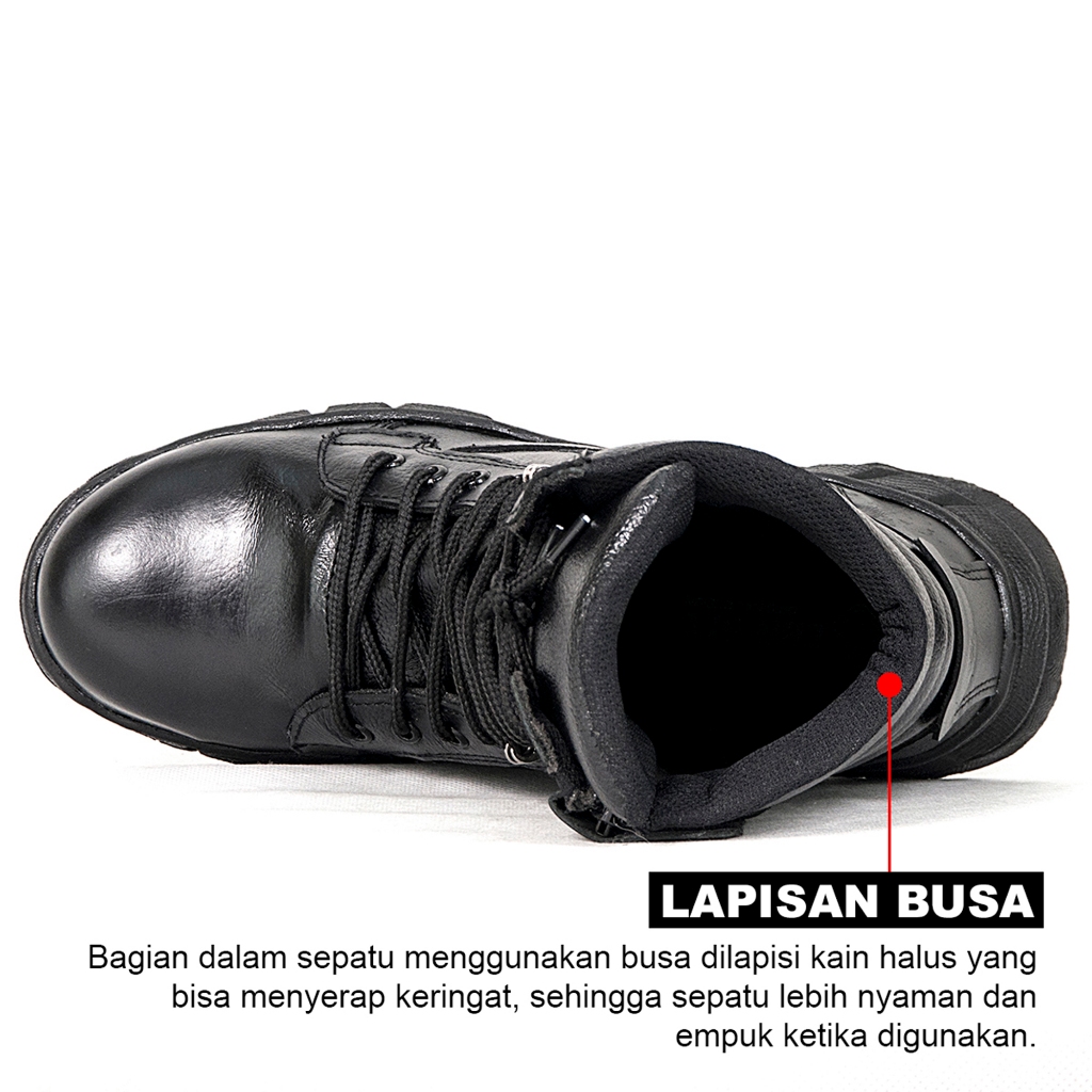 CBR SIX Sepatu PDL Boot Safety Kulit Sapi TNI Polisi pelindung besi hitam