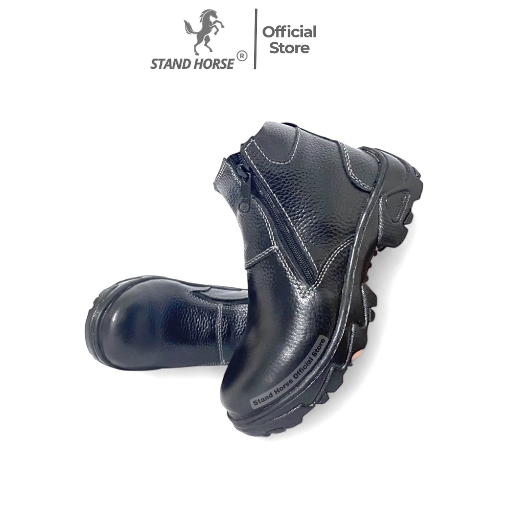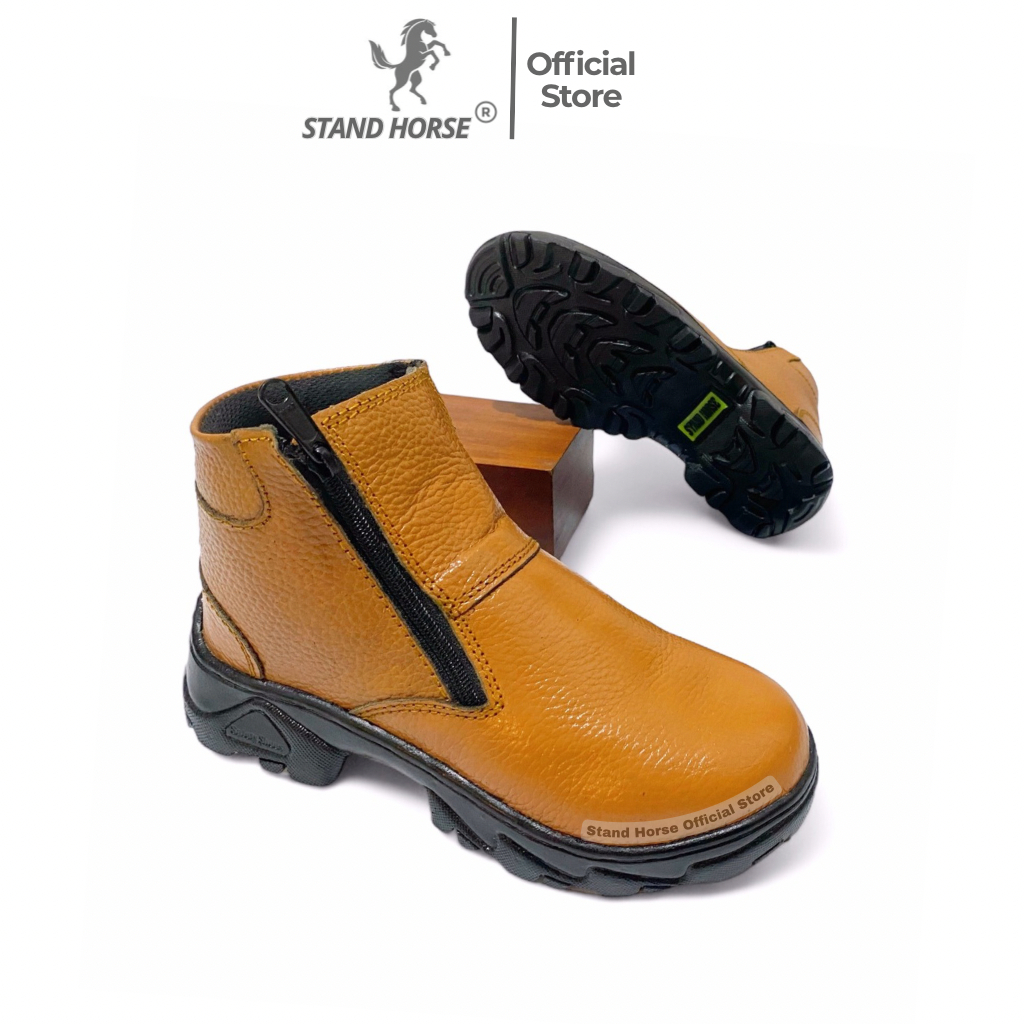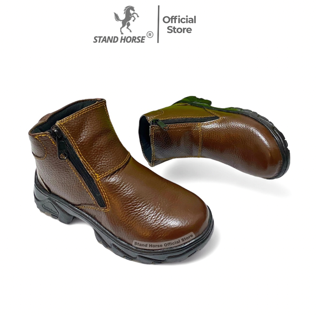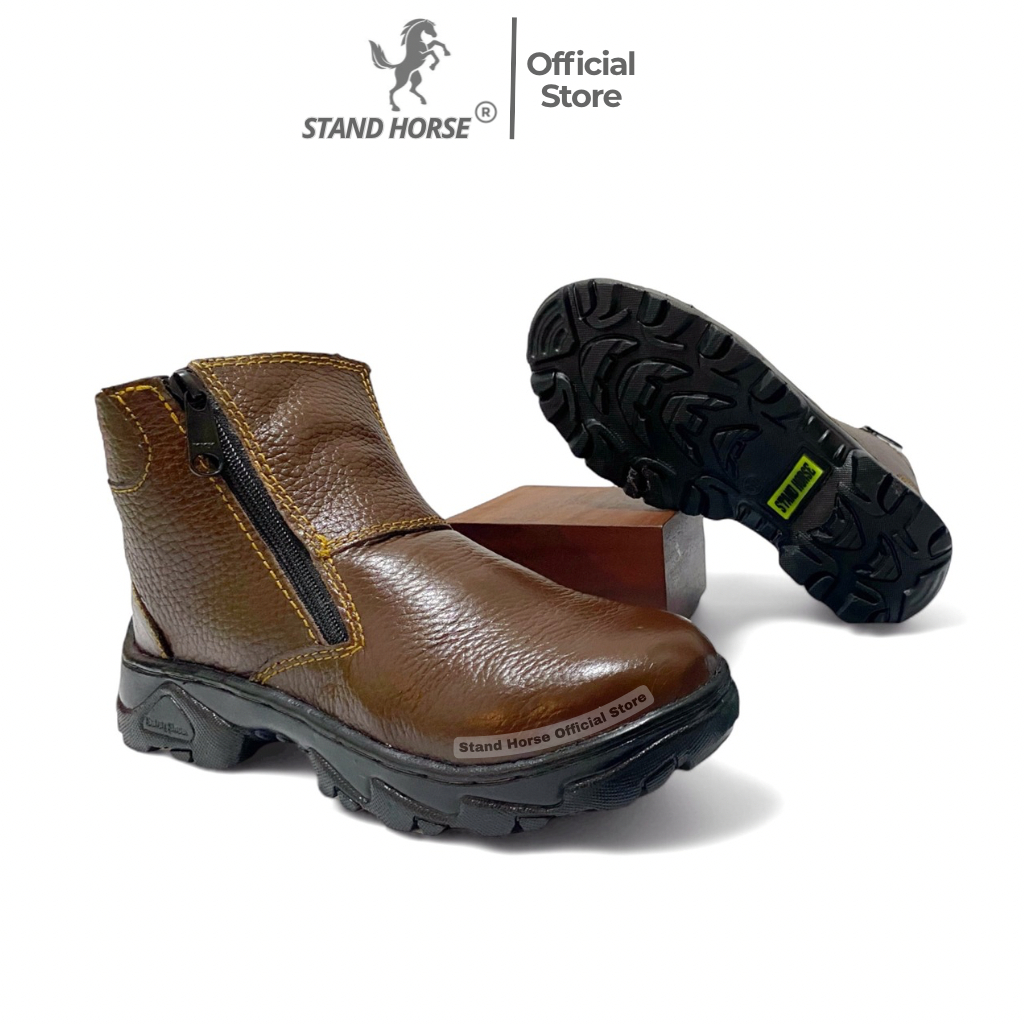 STAND HORSE Safety Shoes 806 Kulit Sapi Model Zipper Ujung Besi Unisex