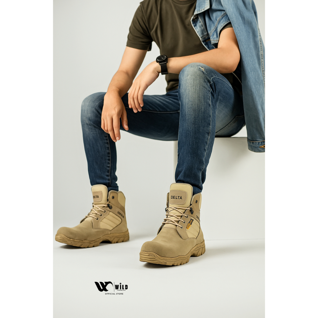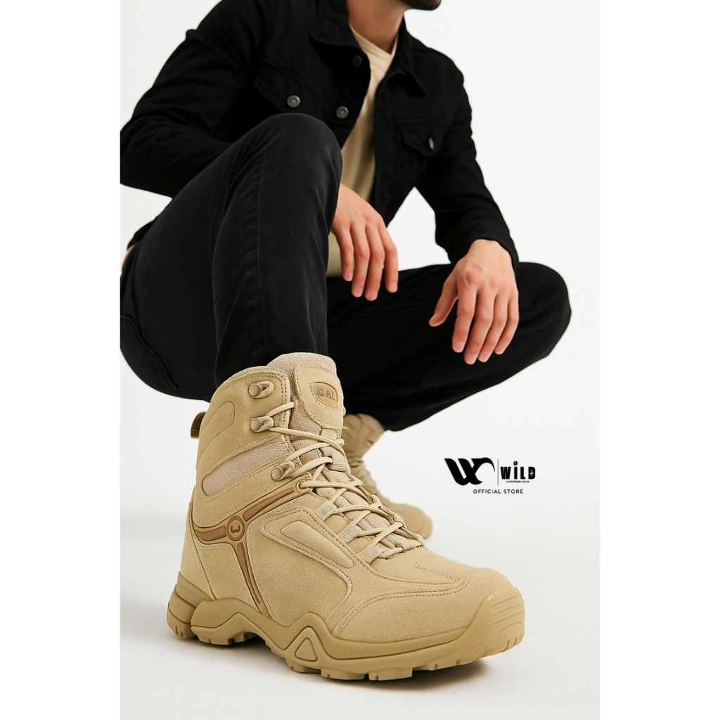 Sepatu Pria Boots Safety Ujung Besi - Cordura Tactical Krem Hitam - Sepatu Safety Pria Outdoor Tracking - WildShoes Offi