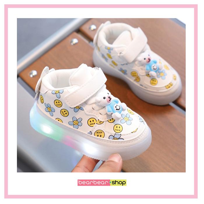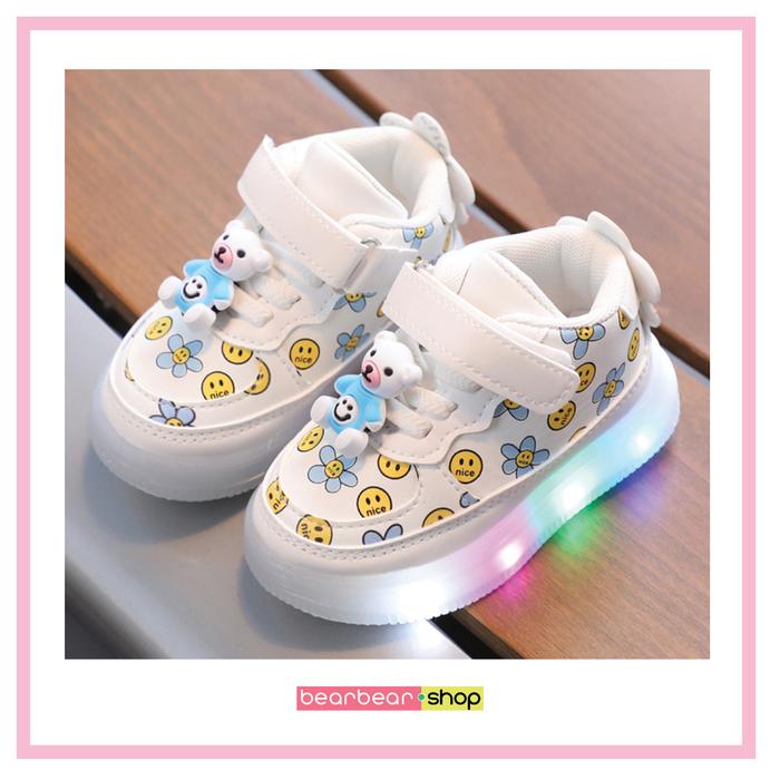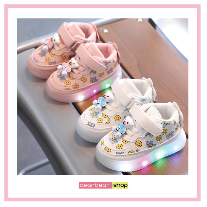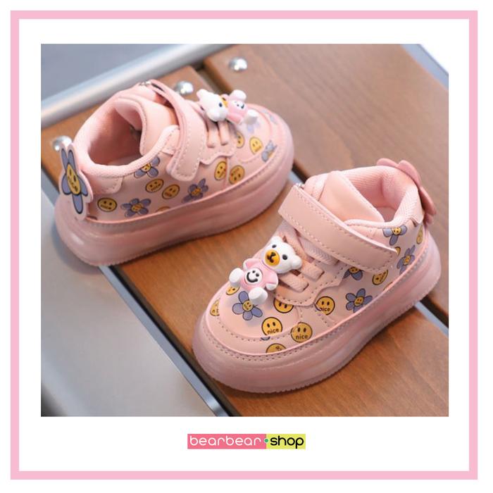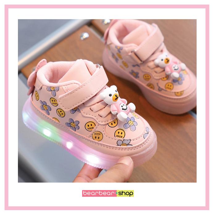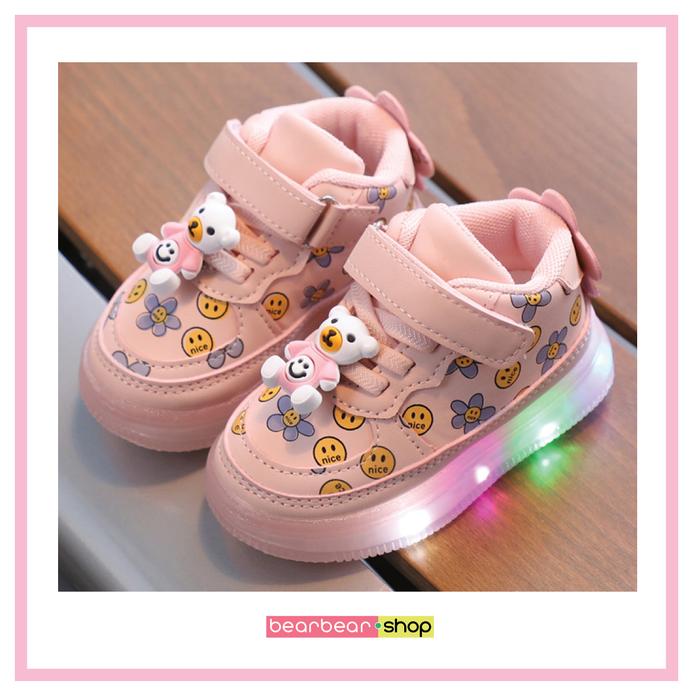 SEPATU KAKI ANAK FASHION LED BOOTS BEAR / SEPATU ANAK PEREMPUAN / SEPATU ANAK IMPORT - BEARBEARSHOP SINTETIS IMPORT TANPA HAK - PINK, 21