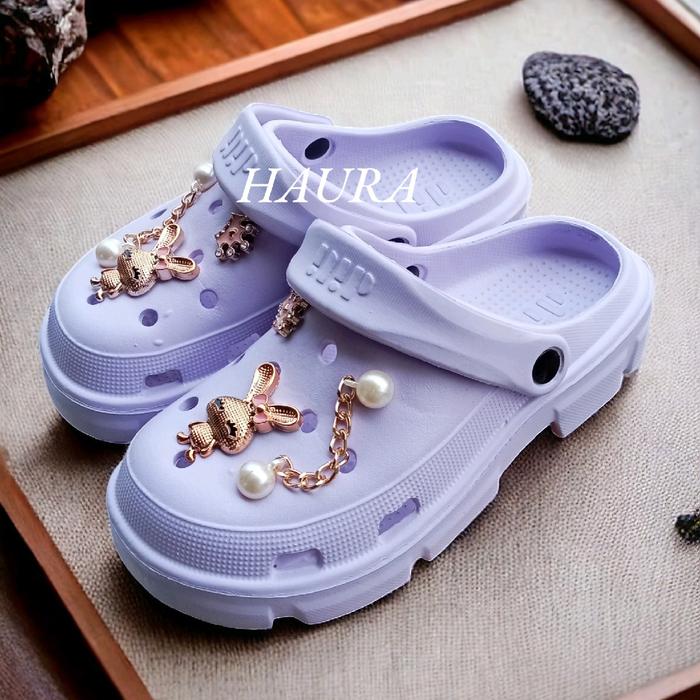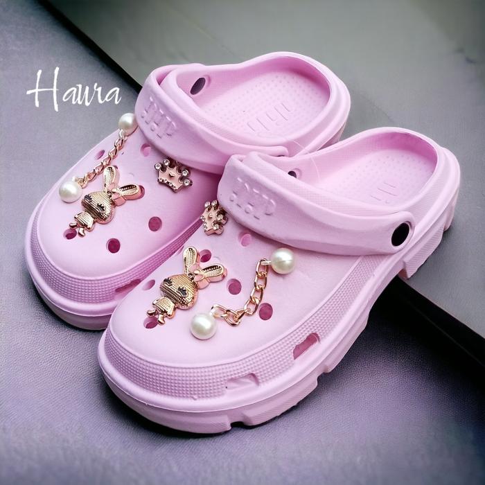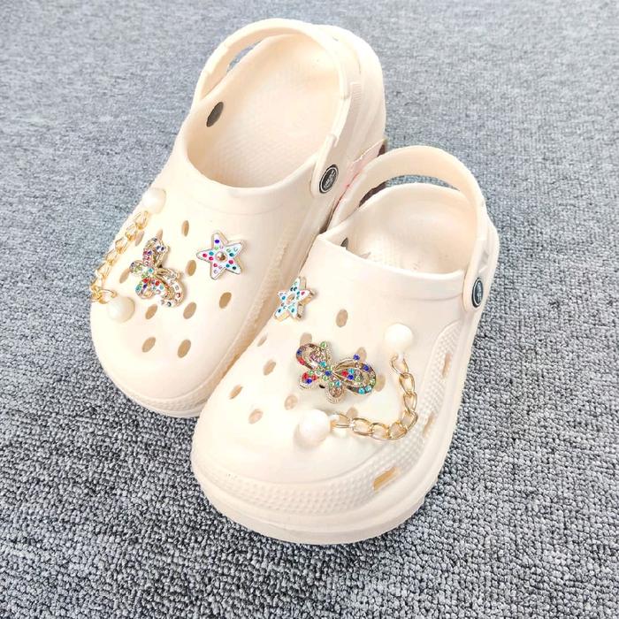 SANDAL ANAK JELLY WANITA BAIM PUJI VIRAL SANDAL PEREMPUAN KEKINIAN FASHION KAKI - 805 KREM KELINCI, 24_25