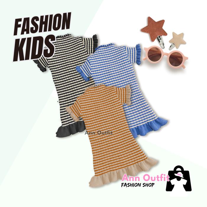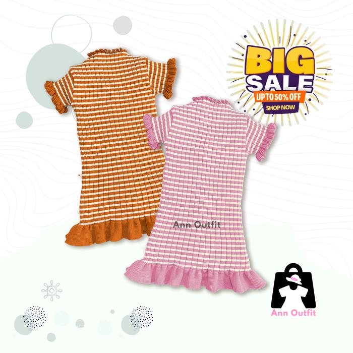 D'AURORA - DRESS RAJUT ANAK PEREMPUAN PREMIUM LENGAN PENDEK CURLY ANN OUTFIT FASHION - RANDOM WARNA, 'S