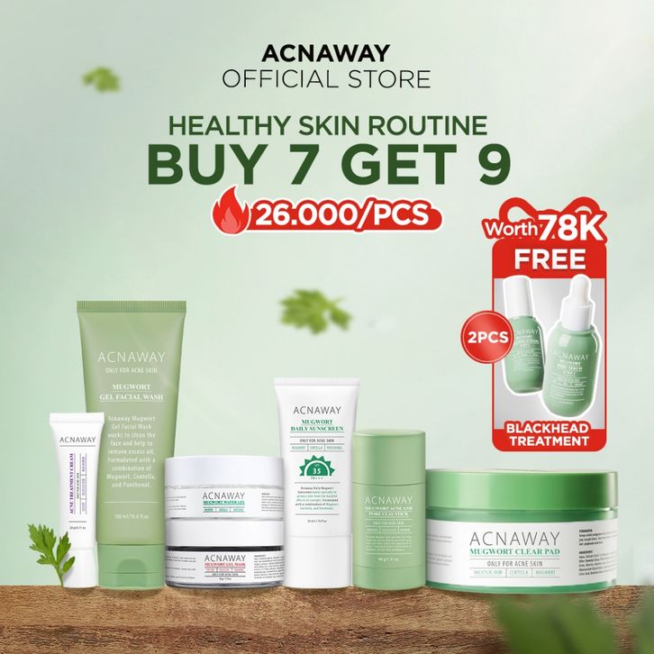 ACNAWAY Bundle 7 in 1 Clear Skin Routine & Health Skin Routine– Perawatan Wajah Lengkap untuk Kulit Berjerawat &