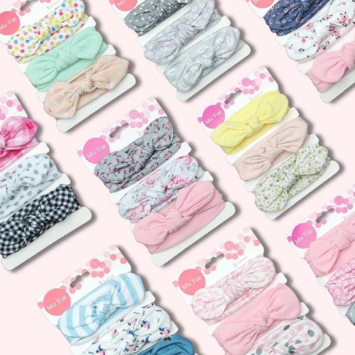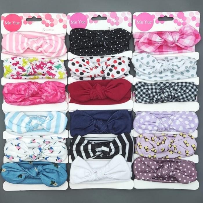 PRECIOUSONE - (1 SET 3 PCS) SATU SET BANDANA BAYI / HEADBAND ANAK KAIN HALUS D36 - SET A