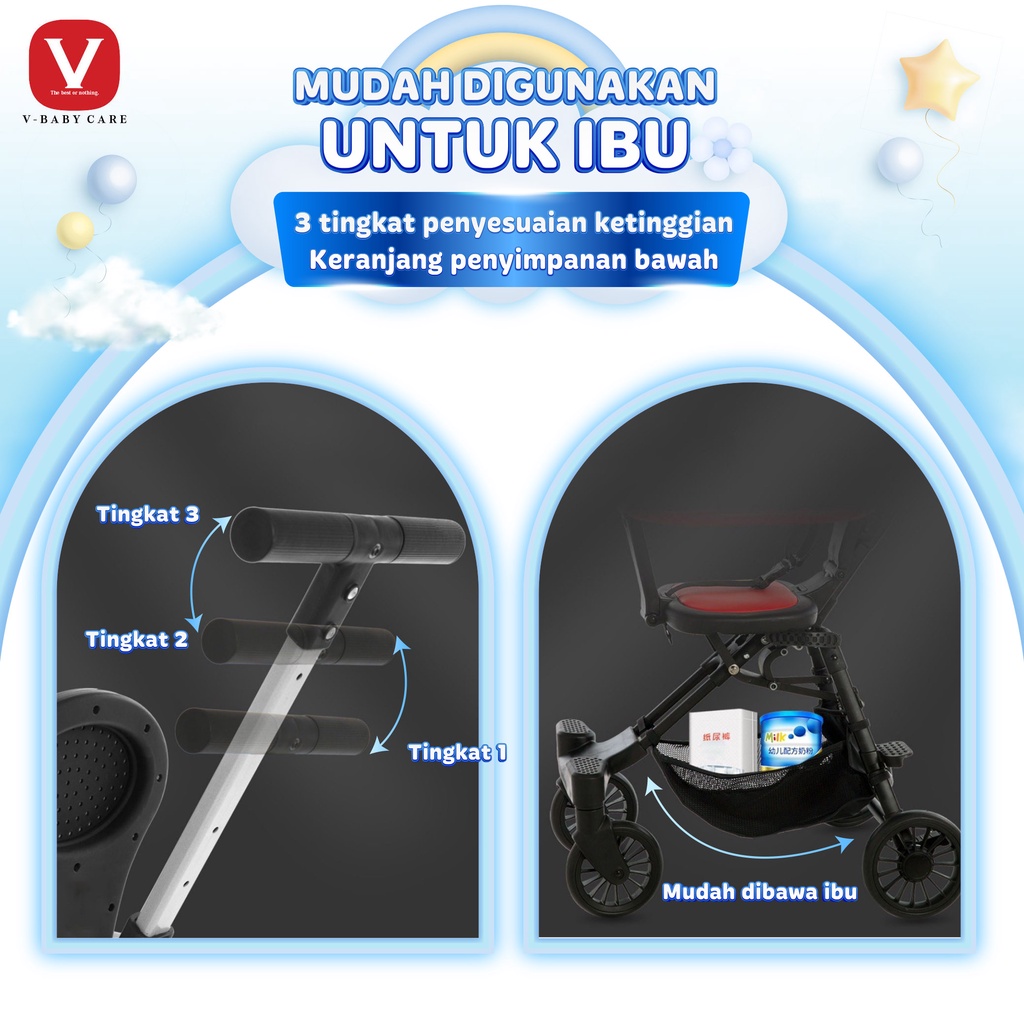 V-BABYCARE Stroller Baby lipat / stroller bayi dua arah/ Kereta Dorong Balita Lipat Magic Stroller Baby 2 Way Travel / V