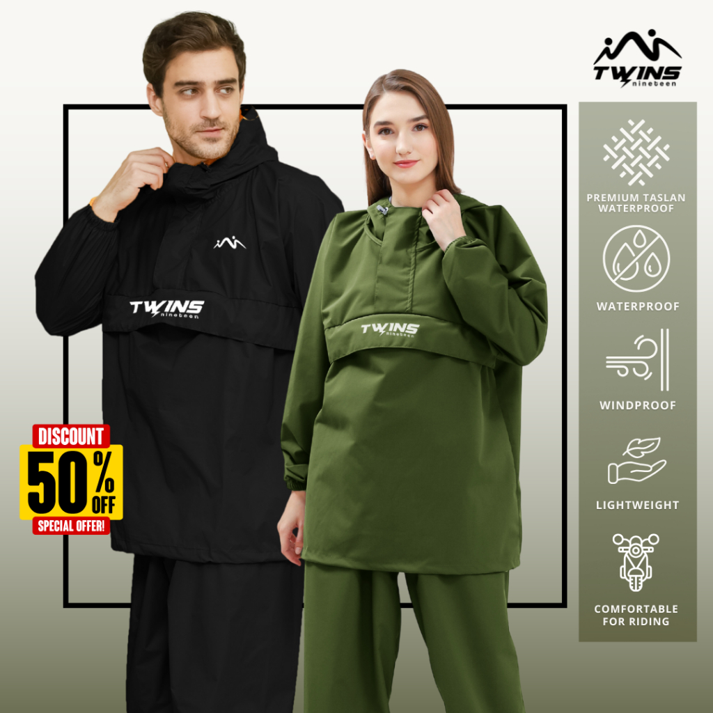 Jas Hujan Pria Wanita Dewasa Anti Air Bahan Taslan Import Raincoat