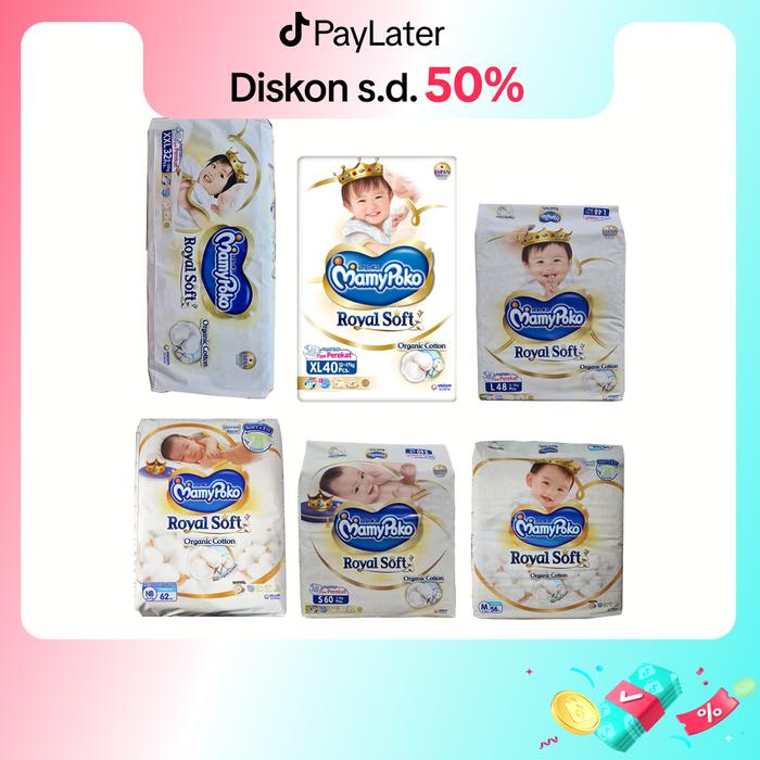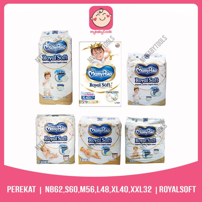 MAMYPOKO ROYAL SOFT NB52 NB62 S60 M56 L48 XL40 XXL32 POPOK PEREKAT TAPE DIAPERS - L48