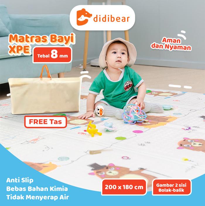 DIDIBEAR BONUS TAS 180X200X8MM BABY PLAYMAT FOLDABLE XPE PLAY MAT THICK - RANDOM, 180X200X8MM TANPA TAS