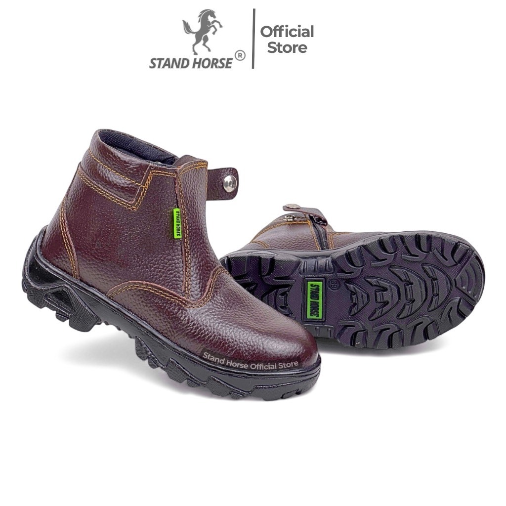 STAND HORSE 506 Sepatu Safety Shoes Pria Model Zipper Klip Kulit Sapi Ujung Besi