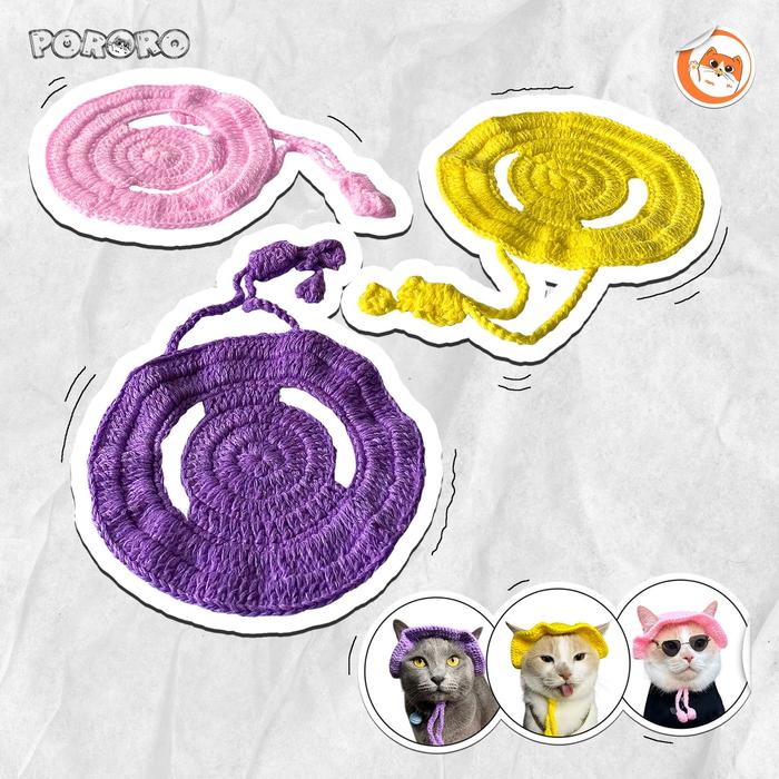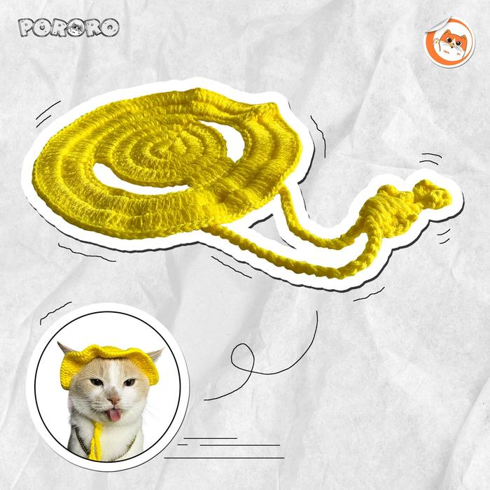PORORO - TOPI RAJUT HANDMADE KUCING MURAH LUCU AKSESORIS HEWAN - KUNING, RAJUT M