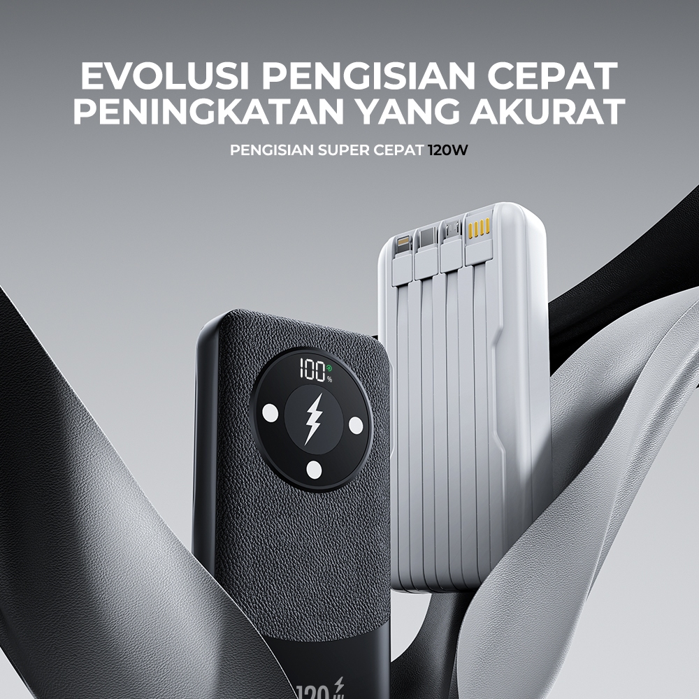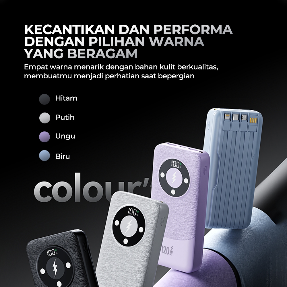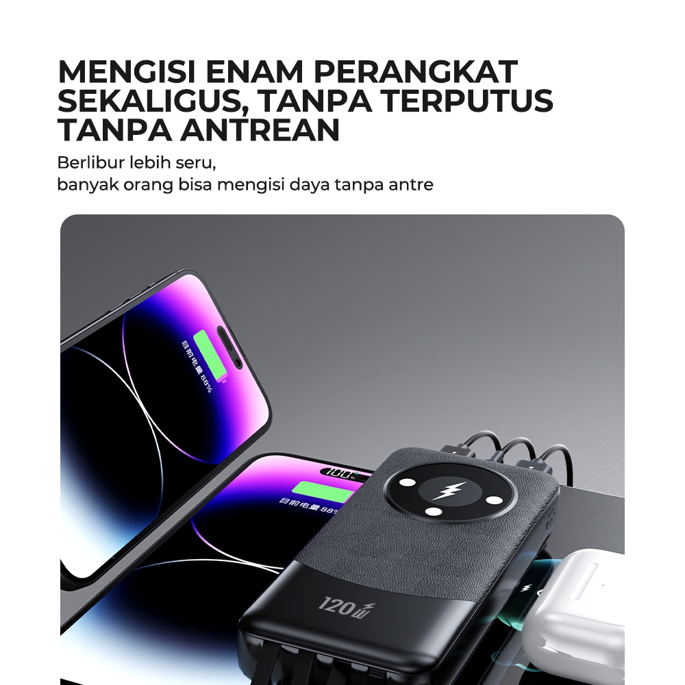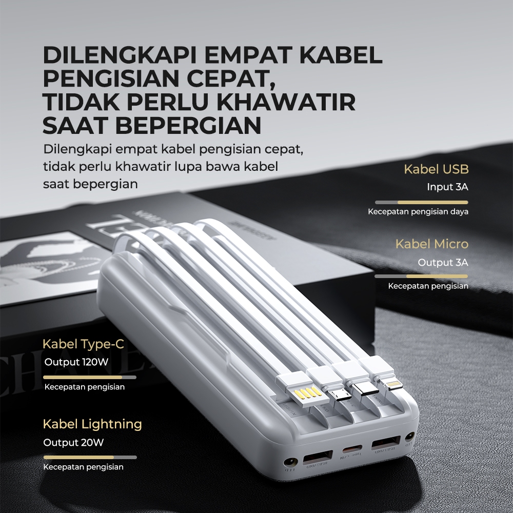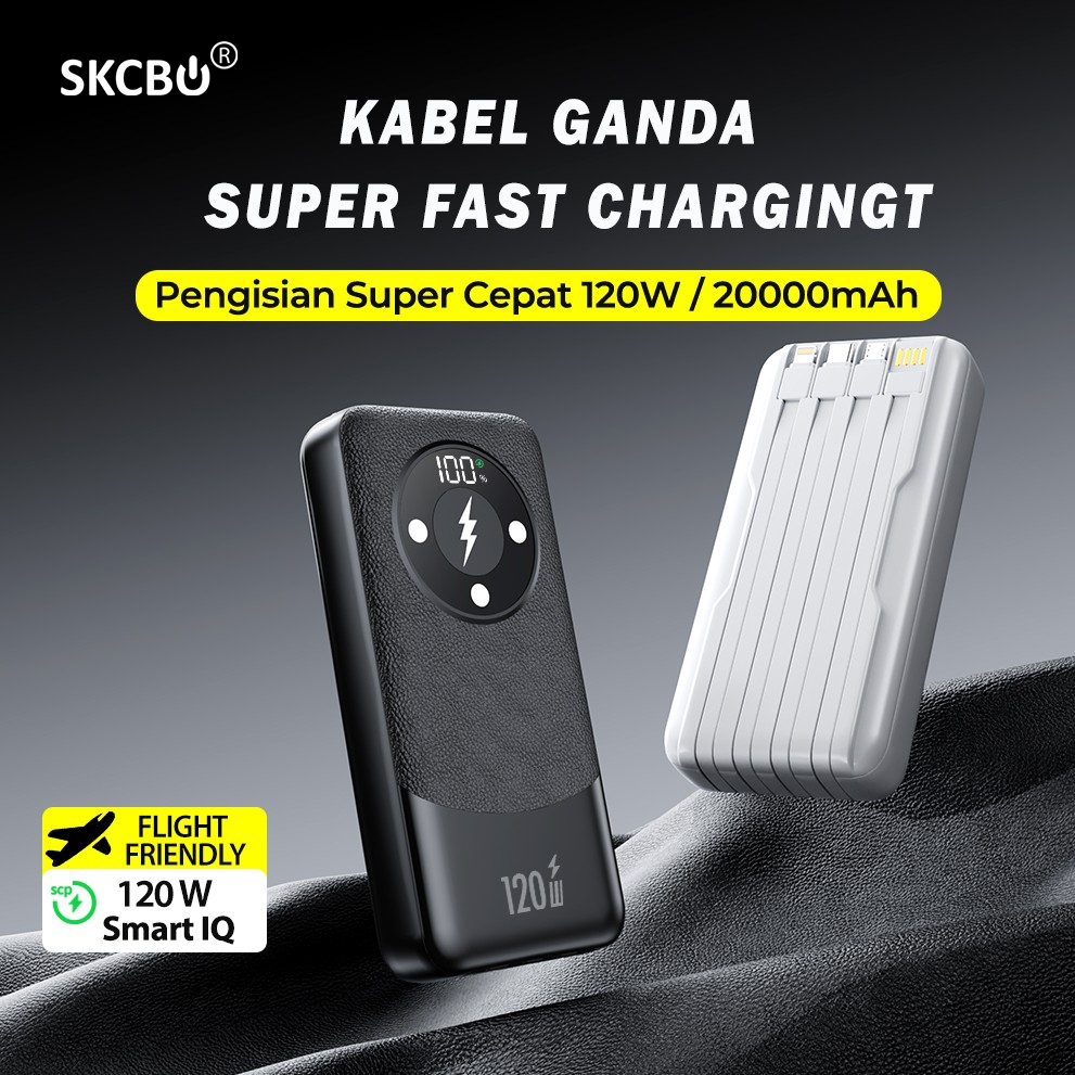 SKCBO POWER BANK 20000MAH PORTABEL DENGAN 4 BUILT-IN CABLES KABEL PENGISI CEPAT 120W FOR IPHONE ANDROID LED DISPLAY DX374