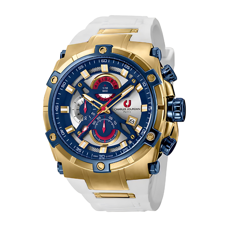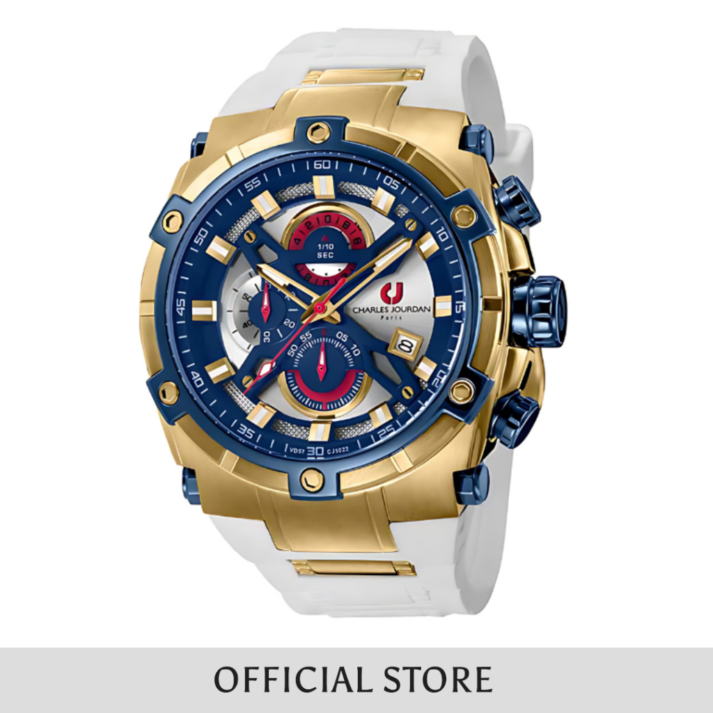 Jam Tangan Pria Charles Jourdan White Dial Men Silikon Strap Analog CJ1022-1212C Original