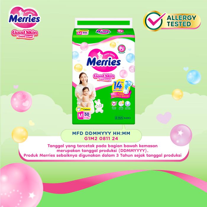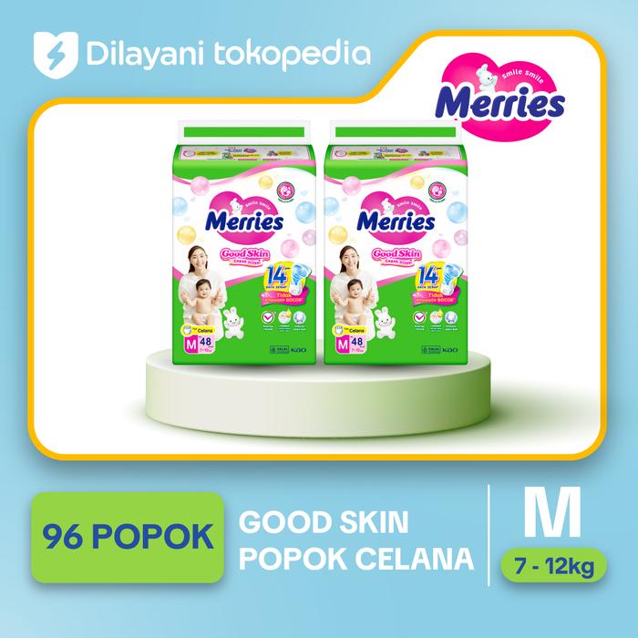 MERRIES GOOD SKIN M48 TWINPACK / 2 BALL - POPOK BAYI CELANA (7-12)KG / BABY PANTS DIAPER
