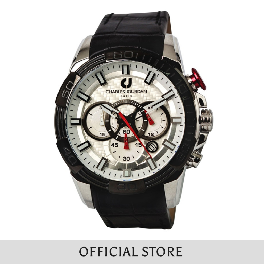 Jam Tangan Pria Charles Jourdan White Dial Men Leather Strap Analog CJ1025-1332C Original