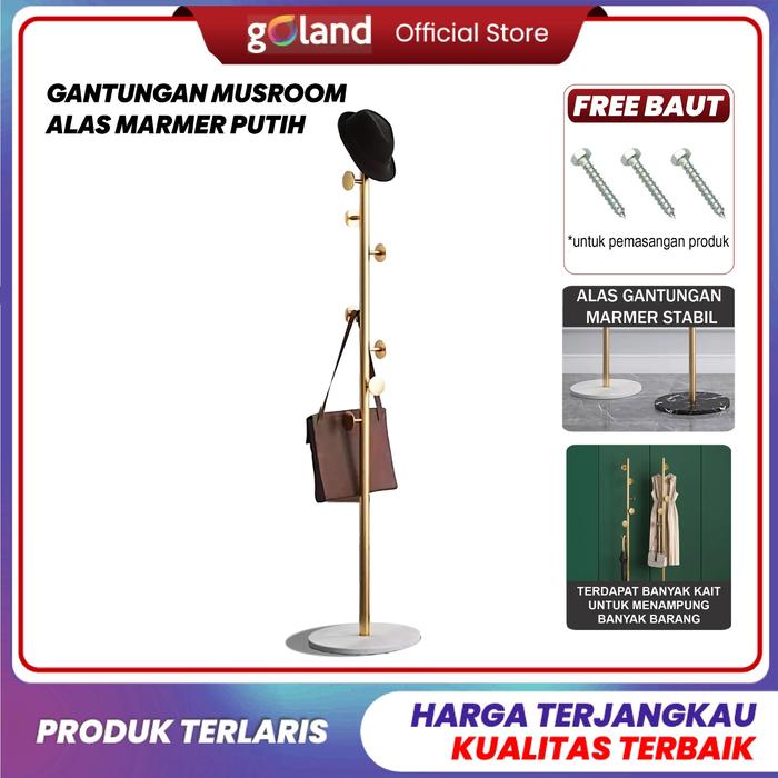 GOLAND GANTUNGAN BAJU MUSHROOM STANDING HANGER BESI ANTI KARAT MODEL MODERN COCOK UNTUK JAS SYAL TAS TOPI PAYUNG MULTIFUNGSI RINGAN DAN KUAT - g0ldd-WHITE