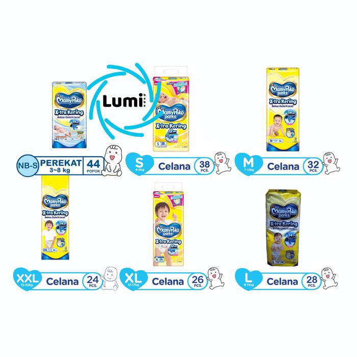 MAMYPOKO PANTS XTRA KERING NB-S44 S38 M32 L28 XL26 XXL24 STANDAR CELANA EXTRA KERING X-TRA KERING - NBS44