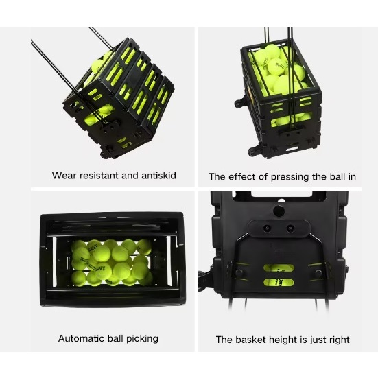 Lebih besar & beroda, 3 in 1 Hopper Tennis / Padel Ball Picker + Roda & Standing Basket - Pemungut / pengumpul Bola Ten