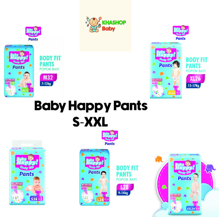 BABY HAPPY POPOK BAYI BODY FIT PANTS S40 / M32 / L28 / XL26 / XXL24 PEMPERS KERING - XXL24