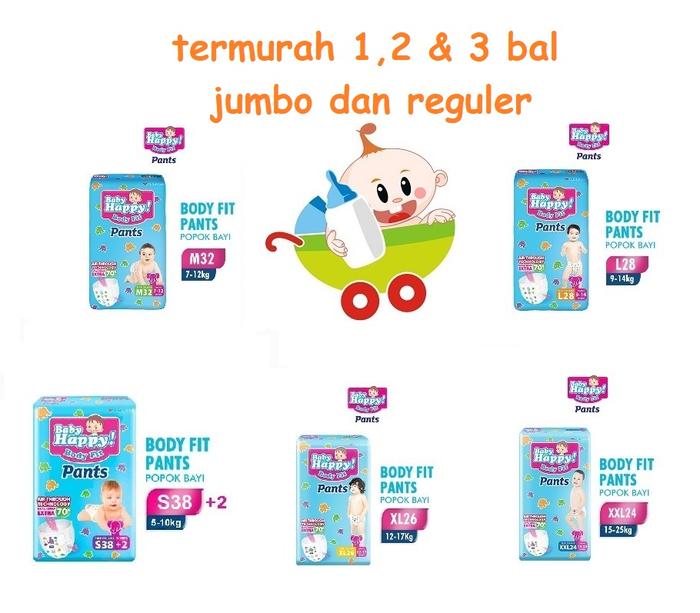 (TERMURAH NIH 2,&3 BAL) BABY HAPPY PANTS S / M / L / XL / XXL REGULER DAN JUMBO SAUDARAPOPOK - 3 X BHP S40