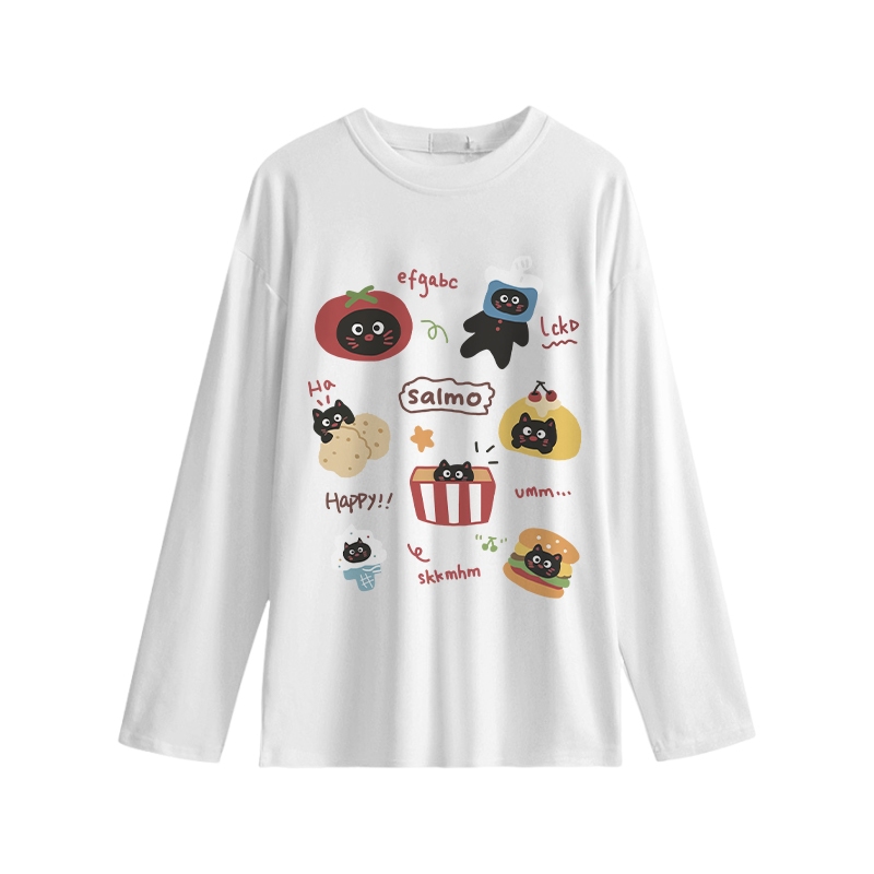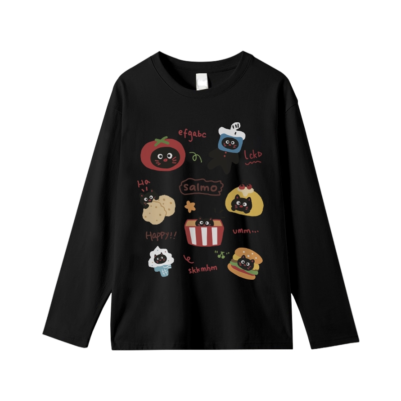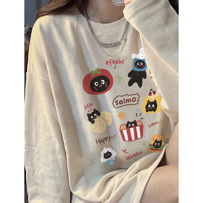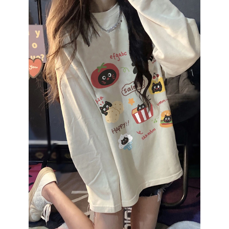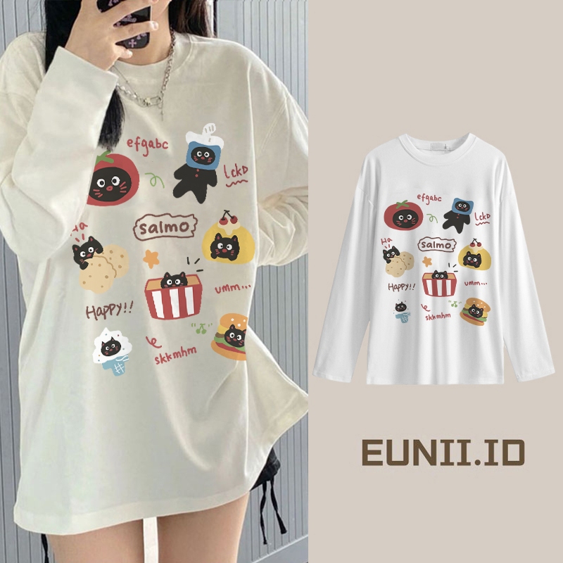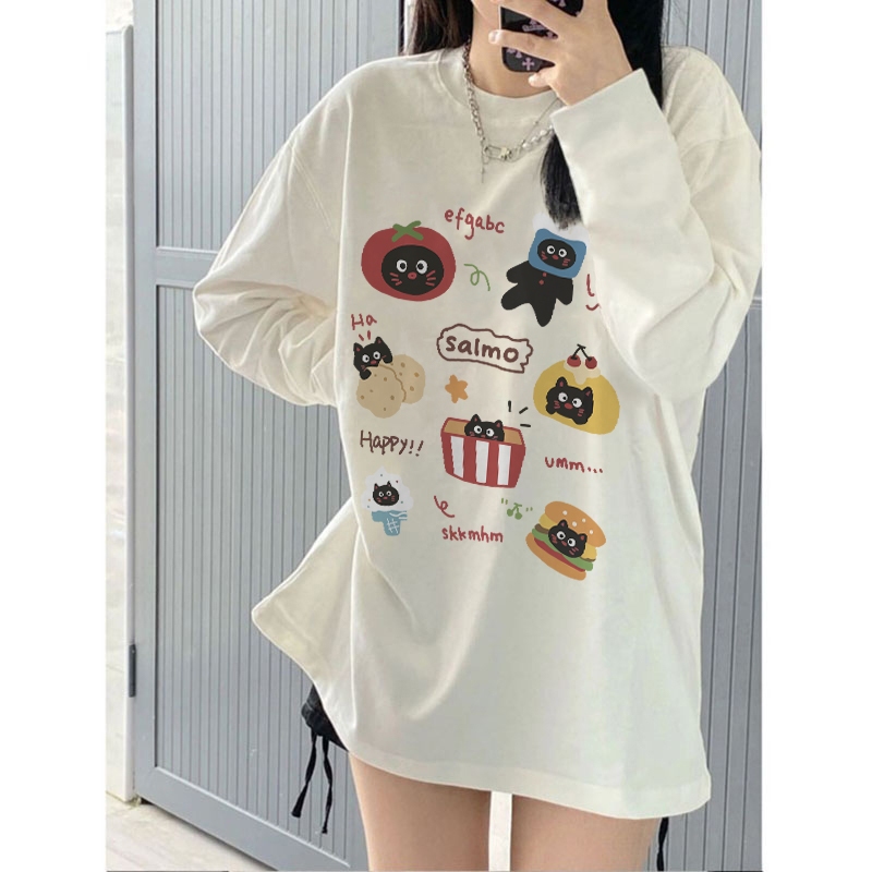 KOREA KOREA LENGAN PANJANG T-SHIRT KEBESARAN |ANAK KUCING HITAM|HYUNDAI LATEST WOMEN'S LONG SLEEVE T-SHIRT / WOMEN'S IONGSLEEVE PLAIN T-SHIRT