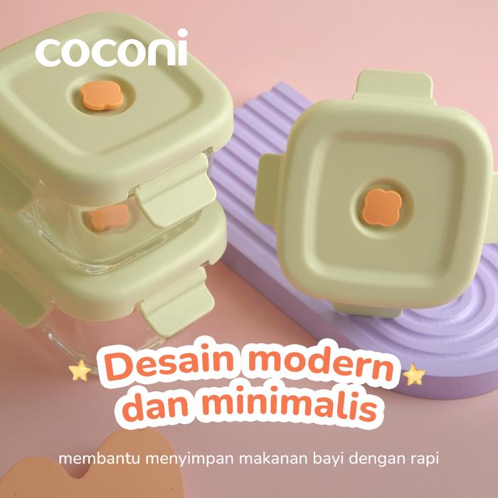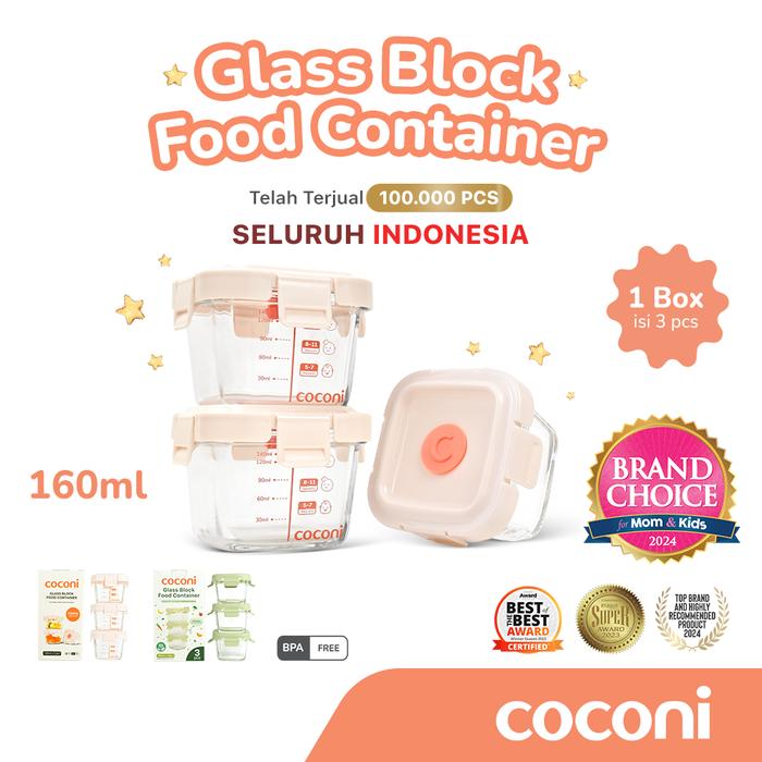 COCONI BABY FOOD GLASS CONTAINER 3 PCS X 160ML | WADAH PENYIMPANAN MAKAN KACA ANAK MPASI KEDAP UDARA BAYI - IVORY