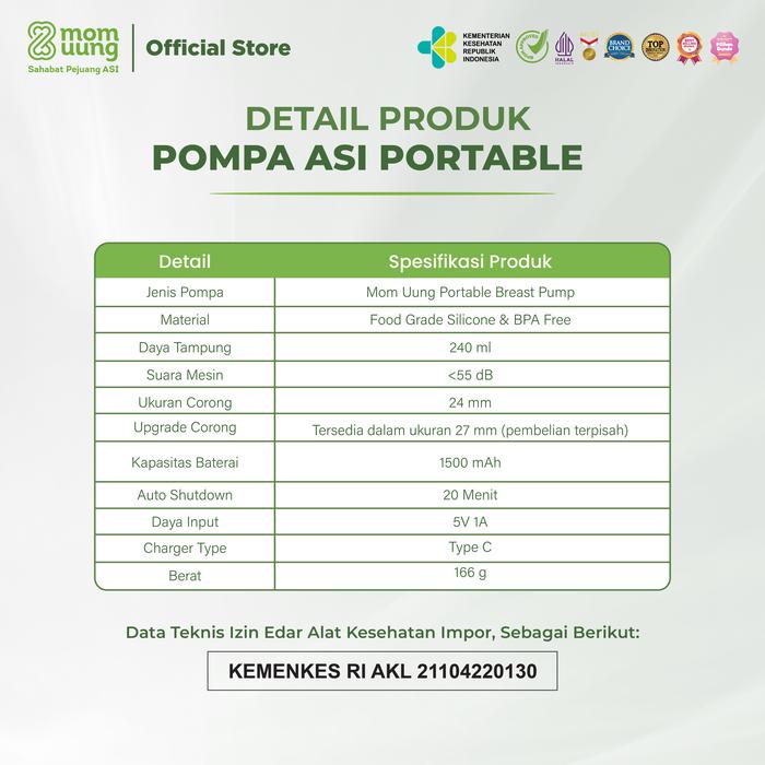 MOM UUNG POMPA ASI PORTABLE DUAL MODE - BREAST PUMP HOSPITAL GRADE - POMPA ASI ELEKTRIK GARANSI 2 TAHUN - POMPA ASI PORTABLE