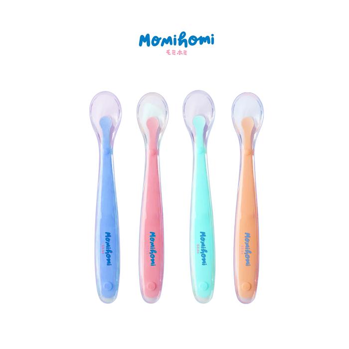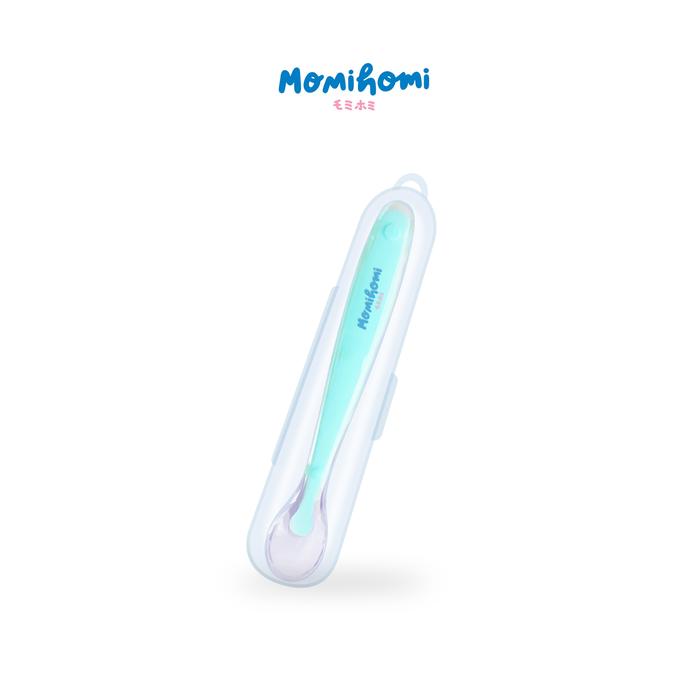 MOMI HOMI SENDOK MAKAN BAYI SILIKON PLUS BOX ( 3068 & 3069 ) BABY SAFETY SPOON LENTUR SENDOK MAKAN SILICONE MPASI BABY FOOD SPOON FOOD GRADE BPA FREE - BIRU