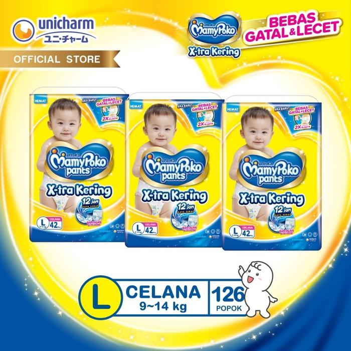 MAMYPOKO X-TRA KERING L 42 - POPOK BAYI CELANA - 3 PACKS KARTON