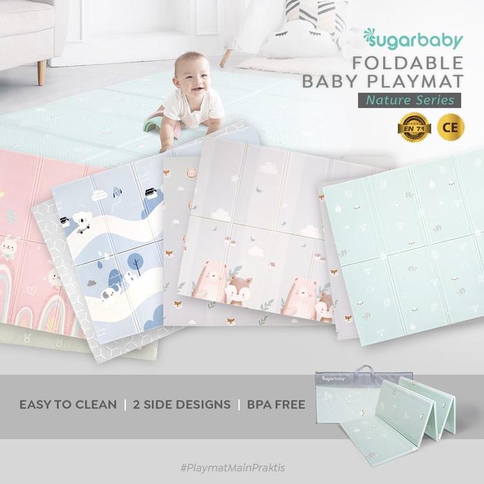 SUGARBABY FOLDABLE BABY PLAYMAT (NATURE SERIES) PLAYMAT KARPET LIPAT BIRU PINK TOSCA ABU KARPET LIPAT TRAVEL SIZE ALAS BAYI FREE BUBBLE TIKAR - BIRU KARPET, MATRAS SUGARBBY
