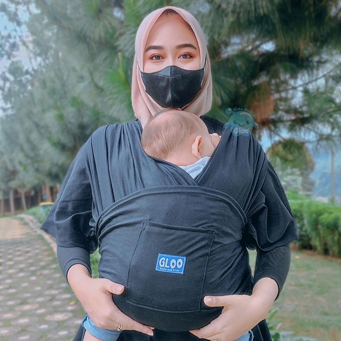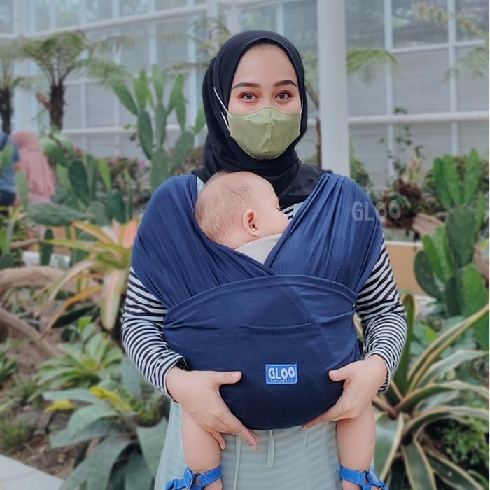 GLOO BABY GENDONGAN BAYI DEPAN M SHAPE BABY WRAP 3IN1 GEOS BABY INSTAN PREMIUM WITH SASH BELT - NAVY, S